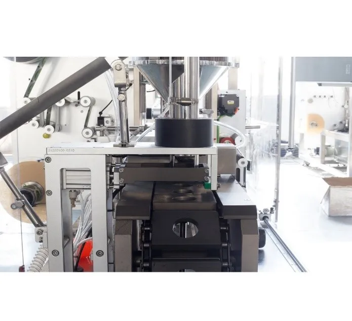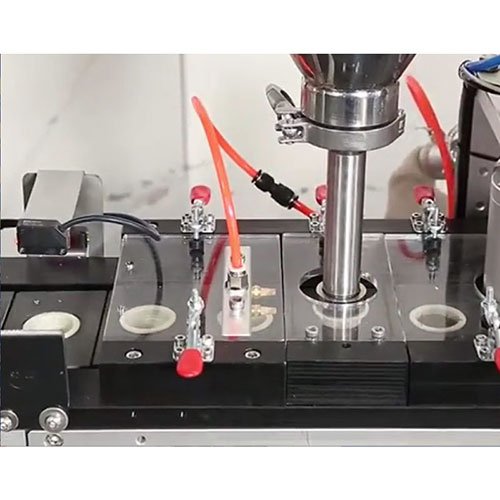 يحتوي على مجموعة كاملة من الوظائف لإنتاج كبسولات القهوة: إسقاط تلقائي للكوب ، تعبئة أوتوماتيكية ، تنظيف أوتوماتيكي لحواف الكوب ، قطع أوتوماتيكي للفيلم (أو وضع أغطية ما قبل القطع) ، وختم آلي.